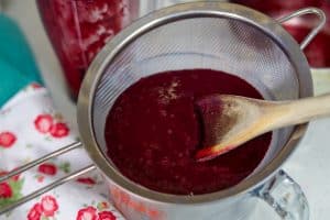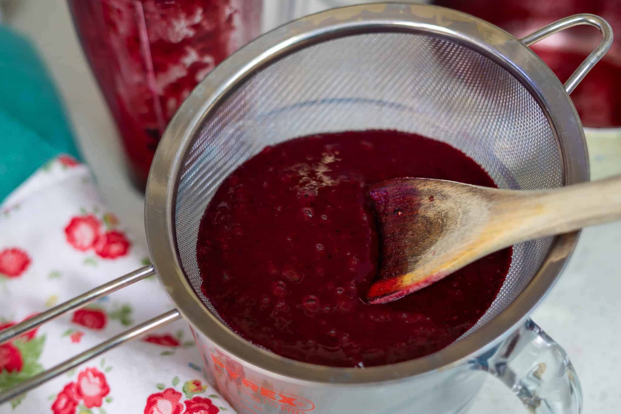 Pour the coulis through a metal sieve too strain out any seeds and bits.